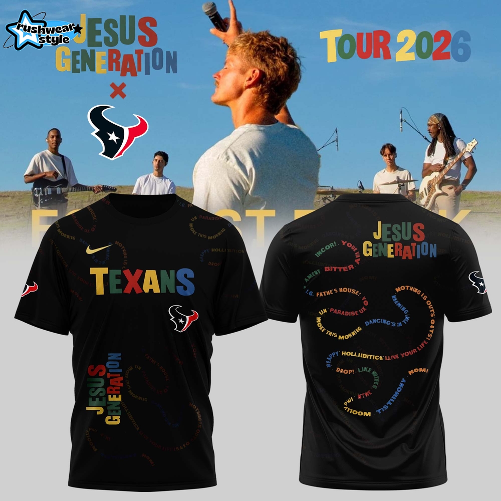 Don’t wait—elevate your game-day wardrobe today with the Houston Texans Jesus Generation Tour 2026 Shirt from RushWearStyle!