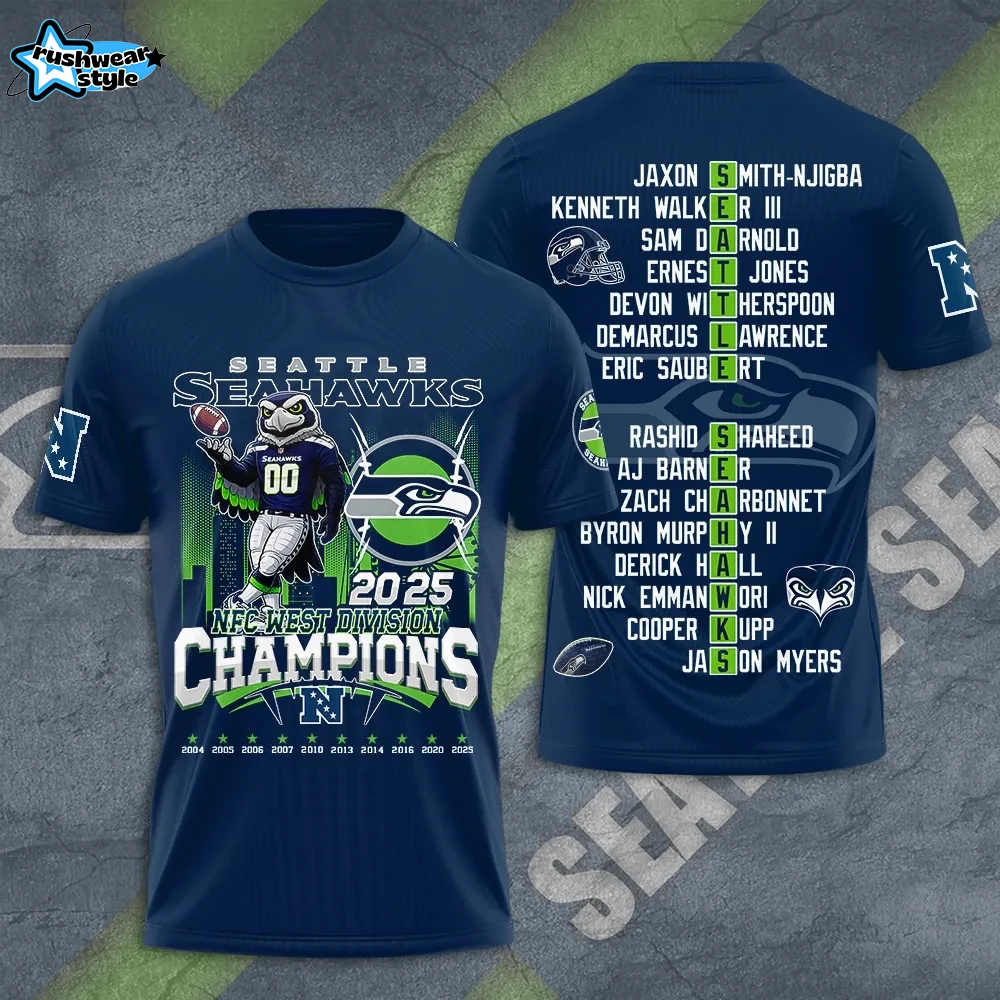 Celebrate the Seattle Seahawks’ victorious journey with the Limited Edition Seattle Seahawks NFC West Division Champions T-shirt. This exclusive design showcases your team pride and makes a perfect addition to any fan’s wardrobe. Crafted for comfort and style, it’s ideal for game days or everyday wear. Don’t miss out on owning this Limited Edition Seattle Seahawks NFC West Division Champions T-shirt—grab yours today!