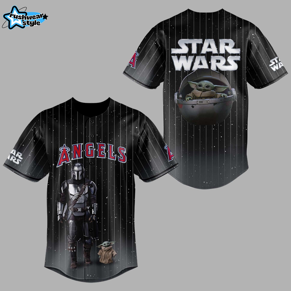 Inspired by the beloved Star Wars universe, this jersey features Grogu and iconic elements from The Mandalorian. It allows fans to showcase their loyalty to both the Los Angeles Angels and the Star Wars saga, fostering a sense of community among fans.