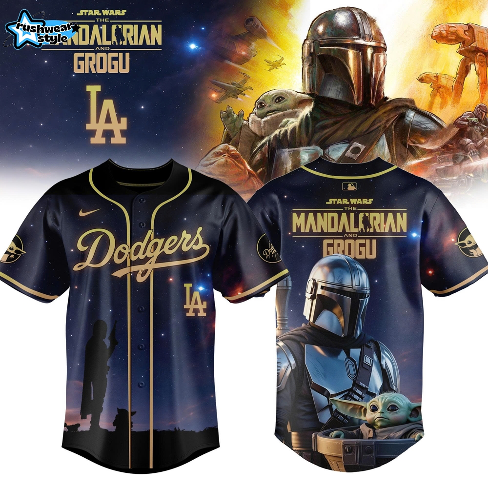 Shop now at RushWearStyle to secure your Los Angeles Dodgers MLB x Mandalorian & Grogu Limited Edition Jersey and show off your style while cheering for your team!