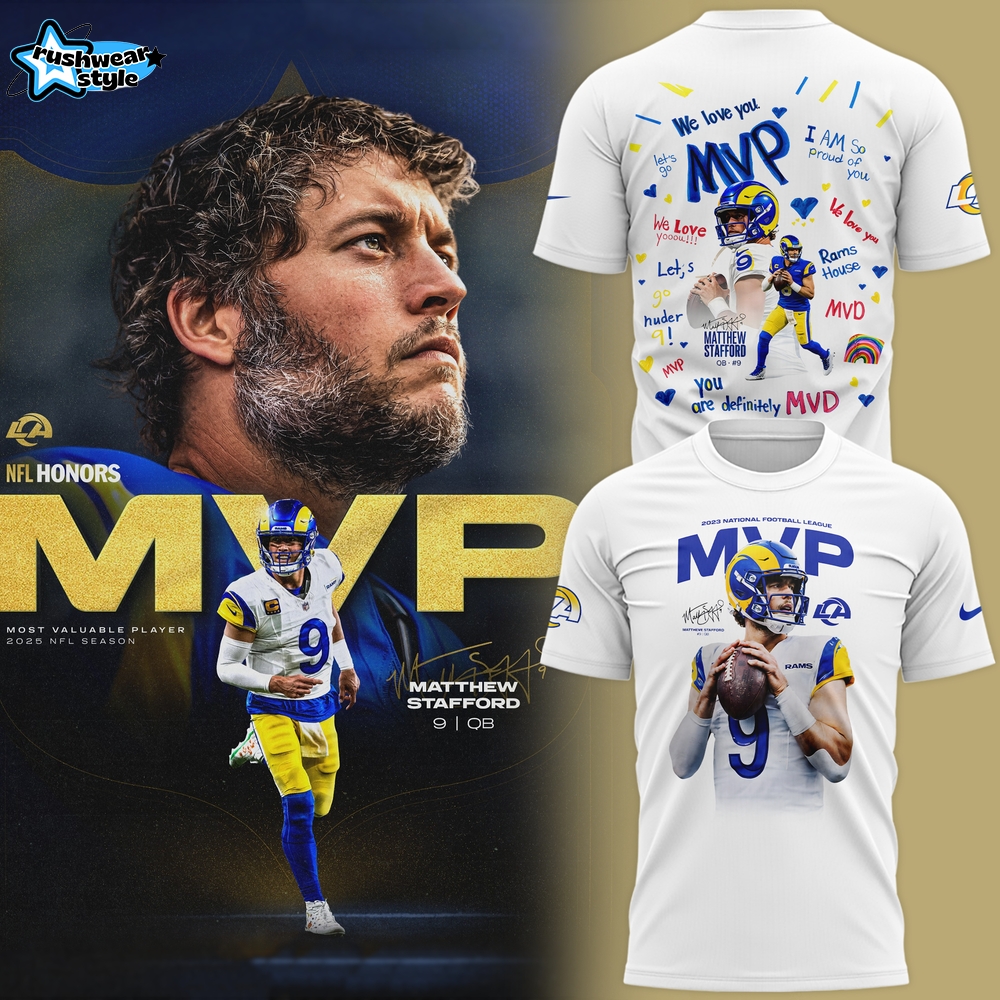 This Los Angeles Rams Matthew Stafford 2025 NFL MVP White Graphic T-Shirt is perfect for tailgating, casual wear, or lounging on the couch while watching the game. It’s a must-have for die-hard Rams fans and anyone who appreciates sports fashion.
