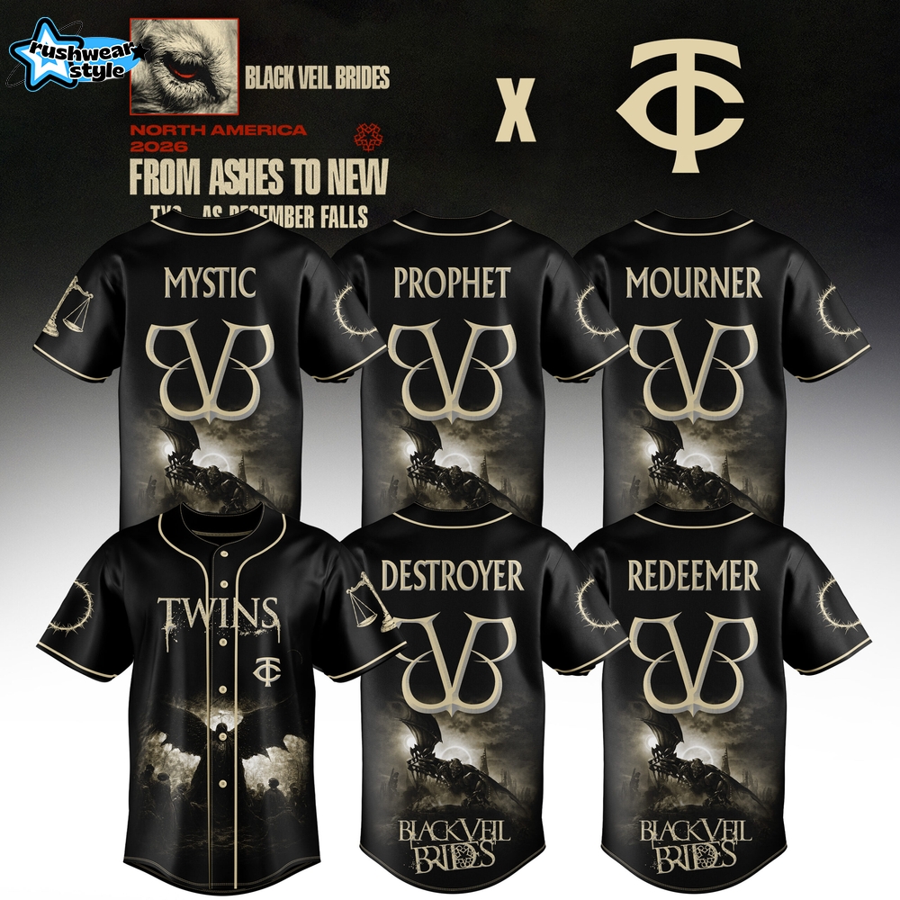 Don’t miss out on owning this exclusive piece. Head to RushWearStyle today and grab your Minnesota Twins x Black Veil Brides – From Ashes To New Tour Baseball Jersey now!