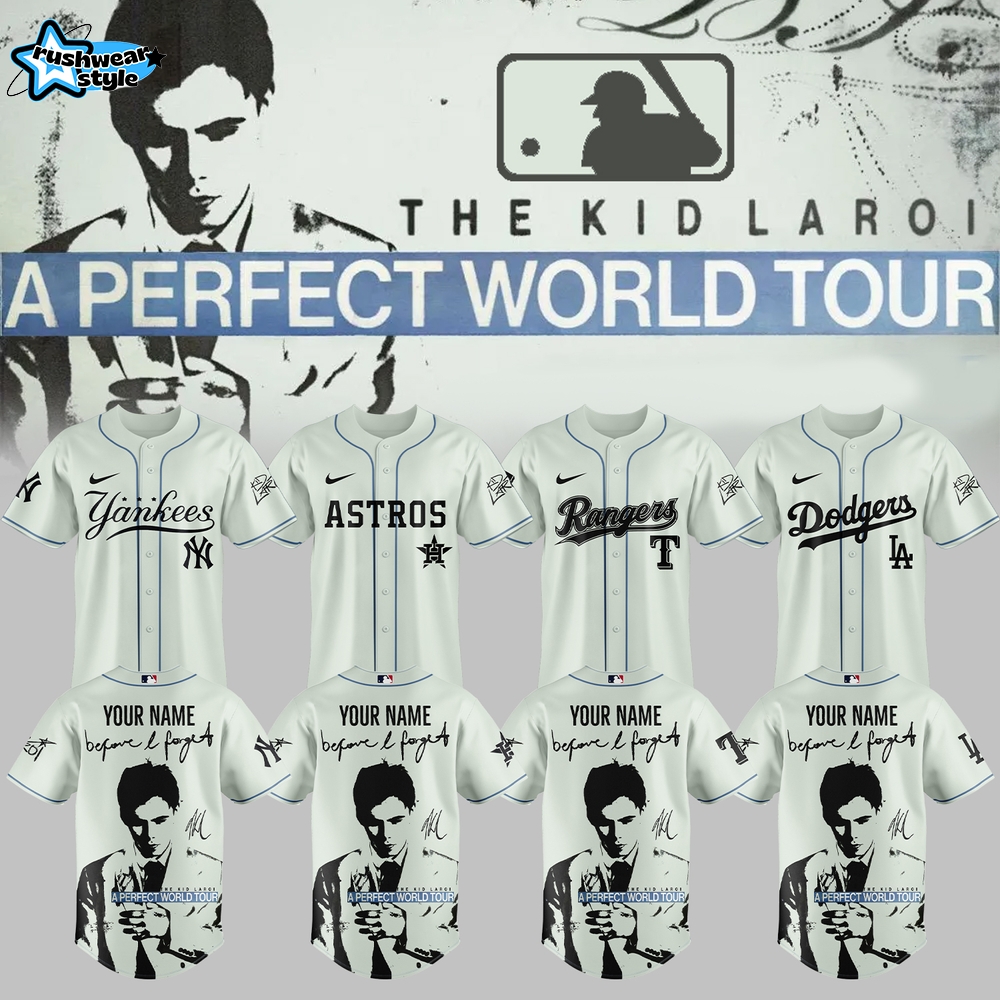 Grab your MLB All Teams x The Kid Laroi “A Perfect World Tour” Jersey today at RushWearStyle and be part of the perfect world where music and baseball unite!