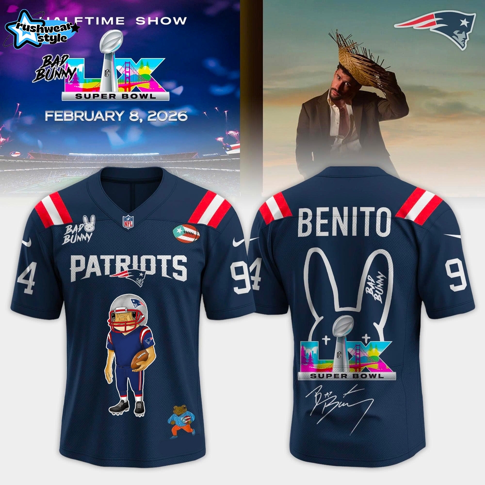 Don’t miss out on this exclusive piece. Grab your New England Patriots x Bad Bunny Super Bowl LX Benito Limited Edition Football Jersey today from RushWearStyle and elevate your game day experience.