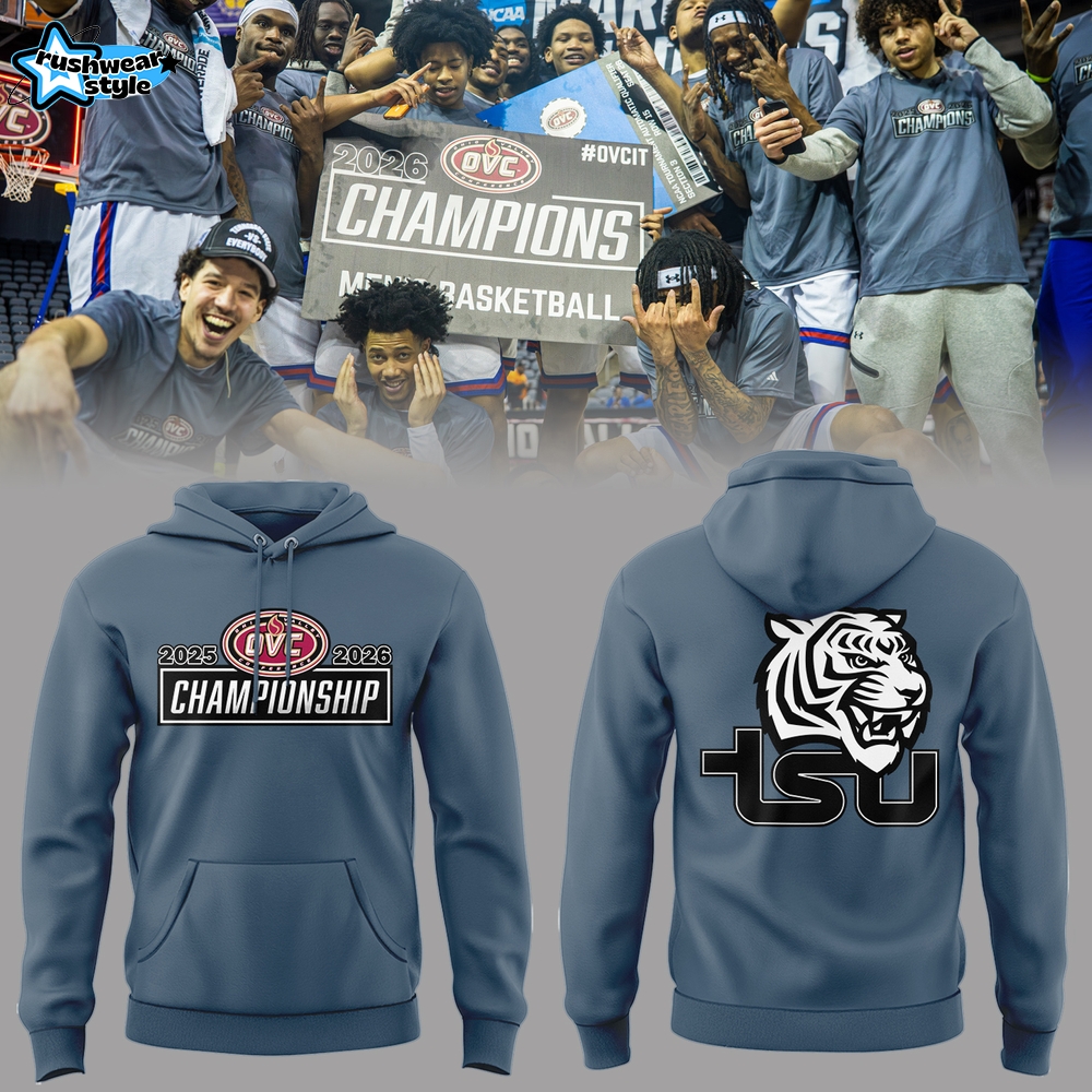 Don’t miss out on this essential piece for every Tigers fan. Grab your Tennessee State Tigers Men’s Basketball OVC Tourney Championship 2026 Hoodie today at RushWearStyle and wear your pride!