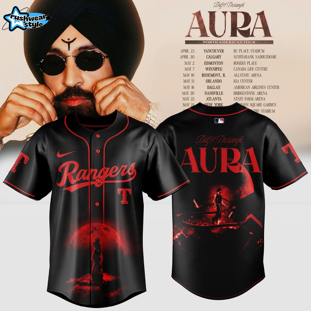 Get your Texas Rangers x Diljit Dosanjh – Aura World Tour 2026 Edition Jersey now at RushWearStyle and elevate your wardrobe!