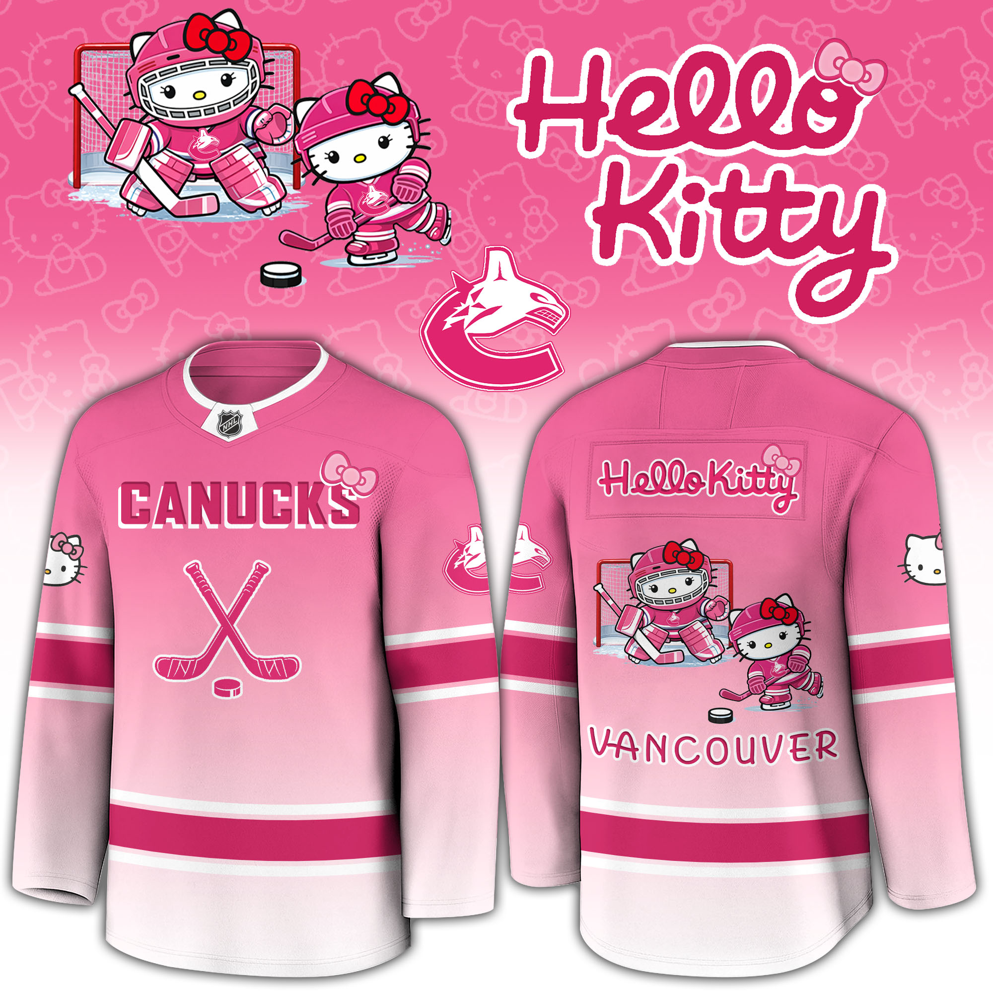 Step up your fan game with the VAN Canucks Special Hello Kitty Limited Edition Jersey, a unique blend of iconic sports culture and beloved character design. This jersey celebrates the Vancouver Canucks and brings a fun twist with the playful addition of Hello Kitty.